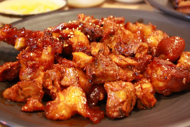 Buldak hay gà phô mai là món ăn nổi tiếng của Hàn Quốc, trong đó thịt gà được tẩm ướp đậm đà, với gia vị chính là ớt. Buldak thường được ăn cùng các món nhạt như trứng hấp hay cơm để giảm bớt vị cay.