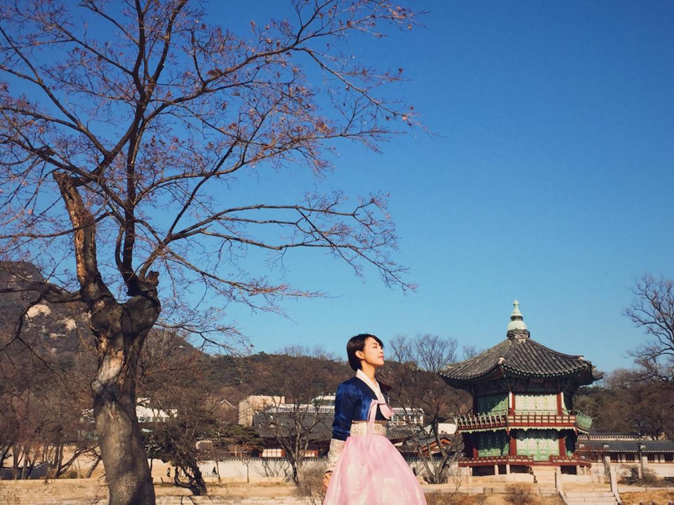 Mặc thử Hanbok truyền thống: Nhiều du khách đã lựa chọn thử mặc Hanbok, trang phục truyền thống của Hàn Quốc khi đến xứ sở kim chi. Thời tiết không quá nóng, ẩm ướt hay quá lạnh khiến cho mùa thu chính là thời điểm tuyệt vời cho trải nghiệm này. Background "sống ảo" hoàn hảo cho bạn có thể kể đến cung điện Hoàng gia Gyeongbokgung ở Seoul với khung cảnh mùa thu tuyệt đẹp. Ảnh: KKday.