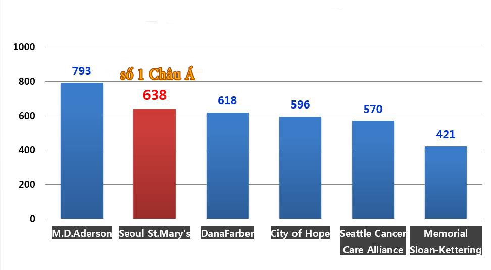 Năm 2017 thành công ghép tế bào sinh huyết 7000 trường hợp cơ quan độc nhất đầu tiên trong nước, càng nâng cao danh tiếng trên thế giới. Thêm nữa, từ năm 2001 giới thiệu lần đầu tiên trong nước điều trị thuốc kháng ung thư bệnh máu trắng, phát triển thuốc kháng ung thư đầu tiên Châu Á, thực hiện thí nghiệm lâm sàng đầu tiên, đóng vai trò tiền khu trong việc phát triển tân dược bệnh về máu. Ngay cả trong lĩnh vực thử nghiệm lâm sàng phát triển thuốc tân dược, bệnh viện đang dẫn đầu trong nước, càng chứng minh thêm lần nữa tiêu chuẩn cao nhất thế giới về viêc nâng cao tỷ lệ sống được thu thập từ hơn 50 quốc gia trên thế giới như: Mỹ, Châu Âu, Nga... Kết quả tích lũy được nhiều kinh nghiệm điều trị.