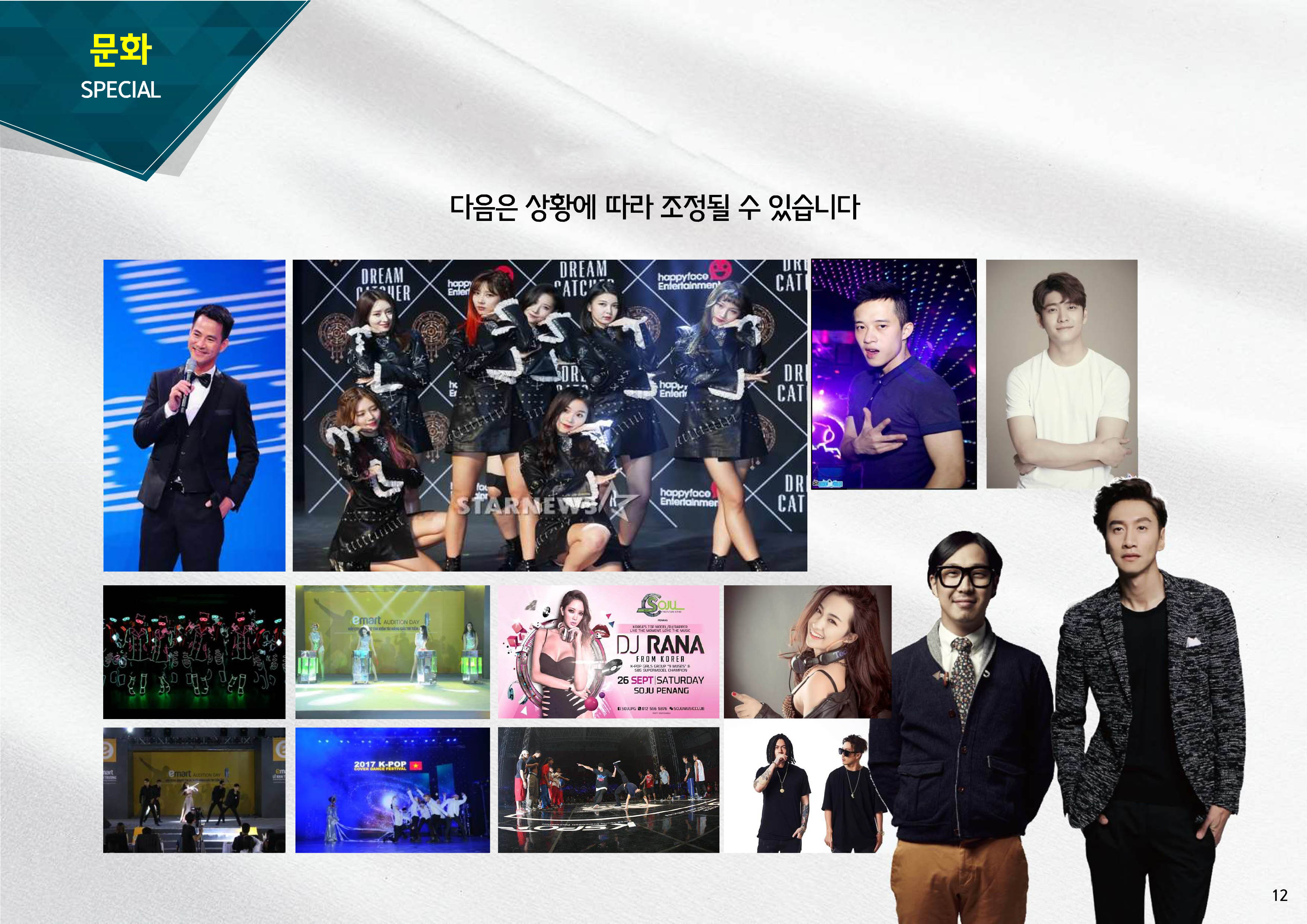 Phía tổ chức sự kiện cho biết khách tham dự có thể nếm thử món ăn Hàn Quốc tại khoảng 120 quầy hàng và tham gia các phần biểu diễn, trò chơi diễn ra tại sân khấu và quảng trường chính. Một số nghệ sĩ làn sóng văn hóa Hàn Quốc Hallyu như Haha, Lee Kwang-su, hai nghệ sĩ được nhiều khán giả Việt Nam yêu mến qua chương trình thực tế Running Man (đài SBS), cũng sẽ xuất hiện trong lễ hội sắp tới để giao lưu với người hâm mộ.