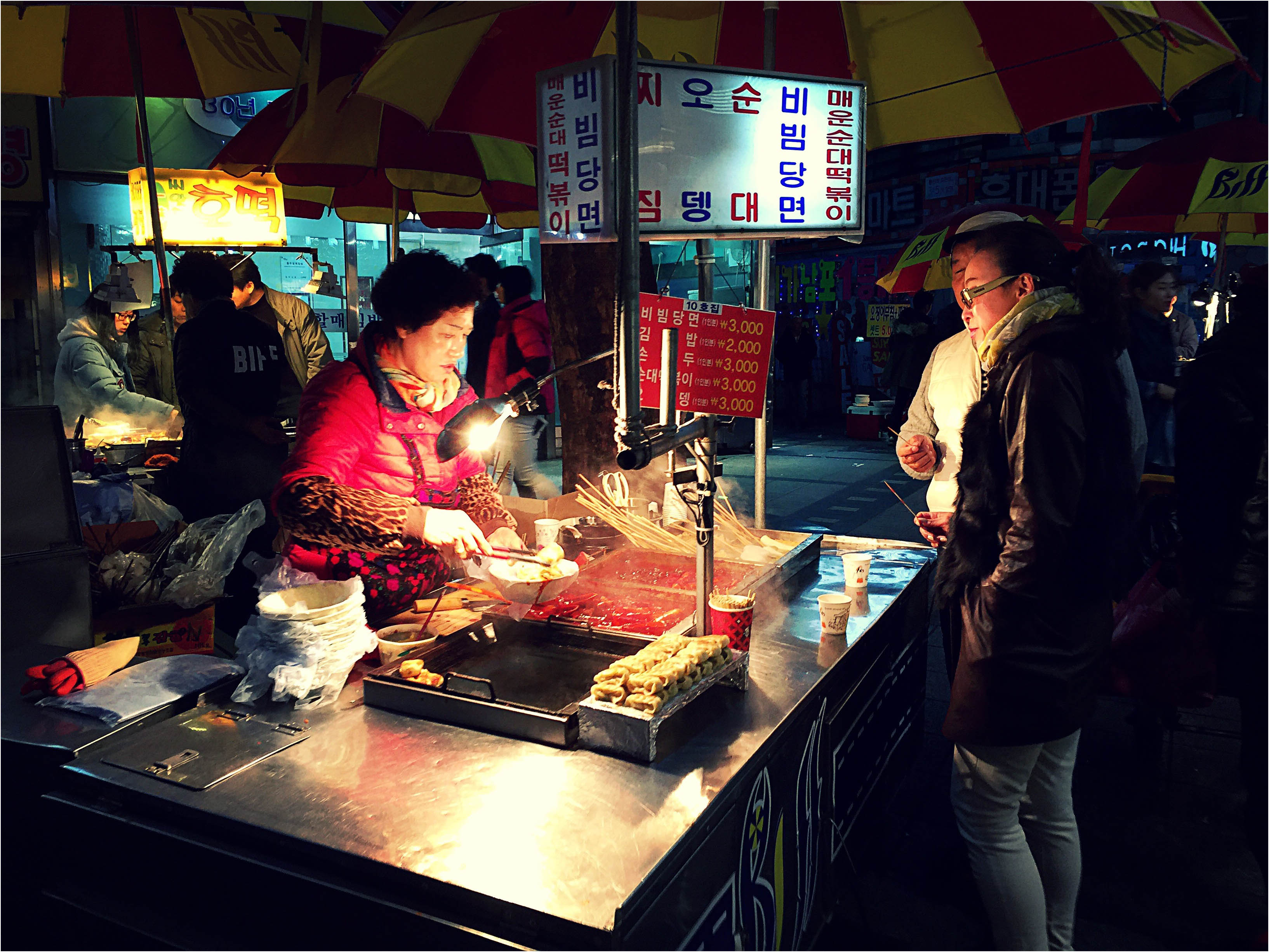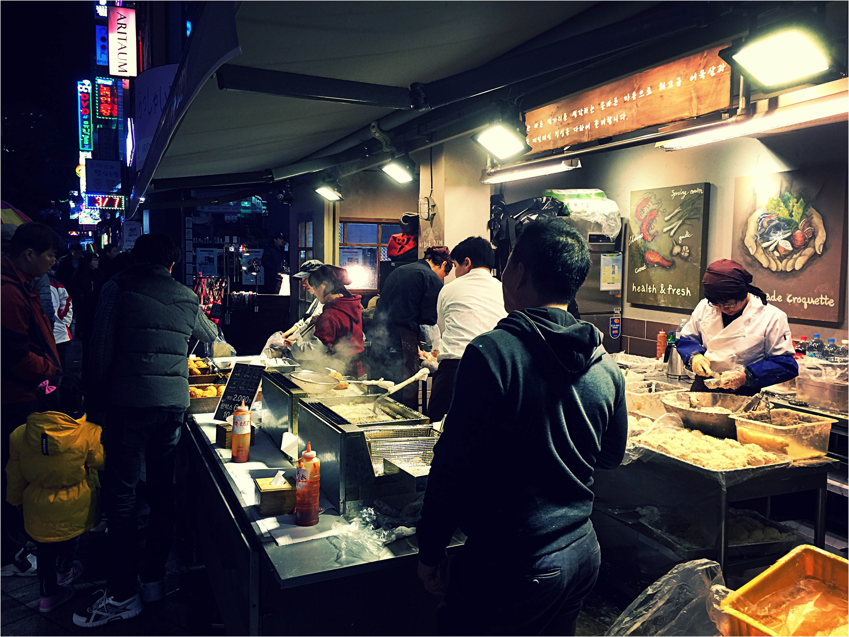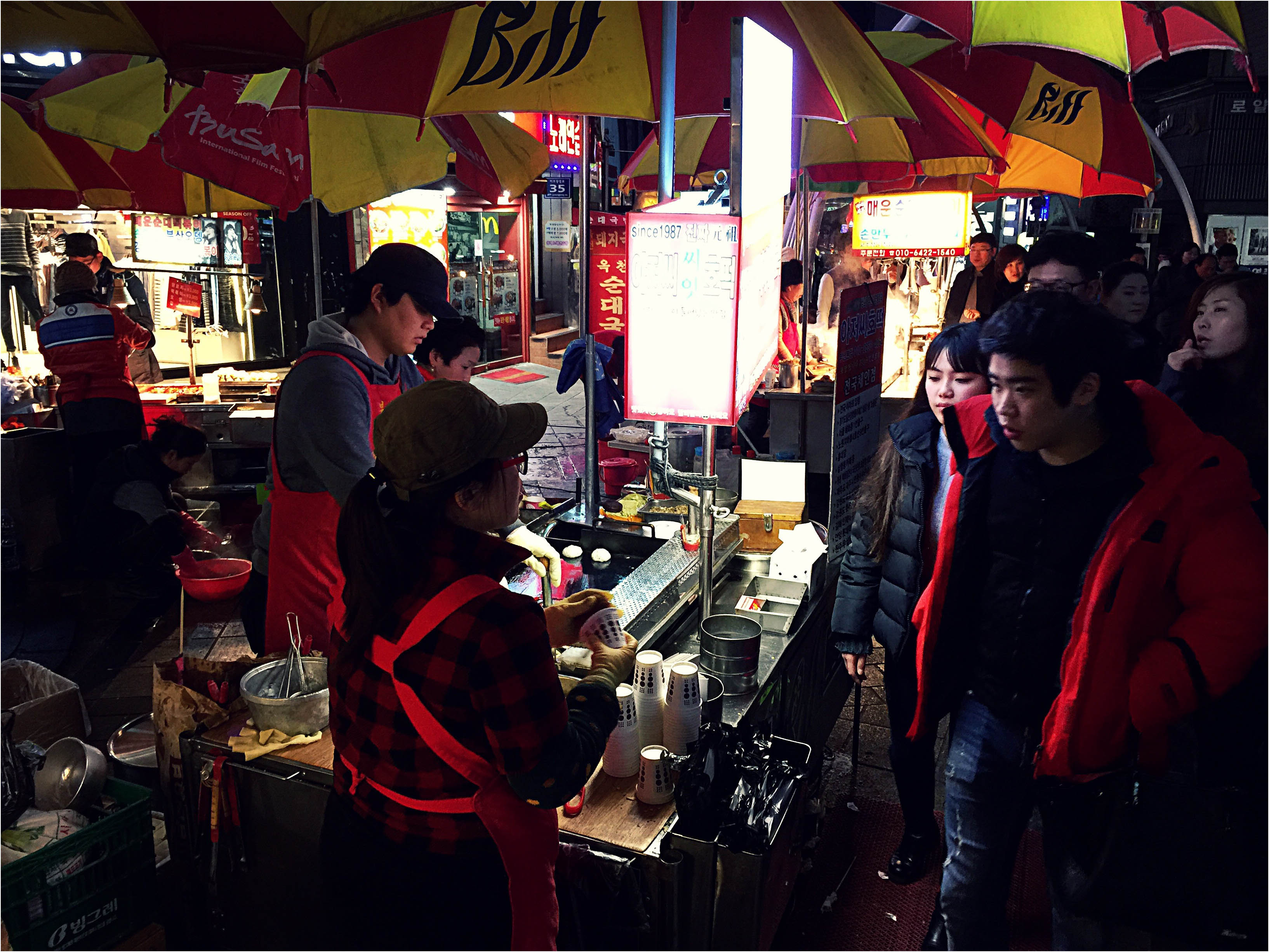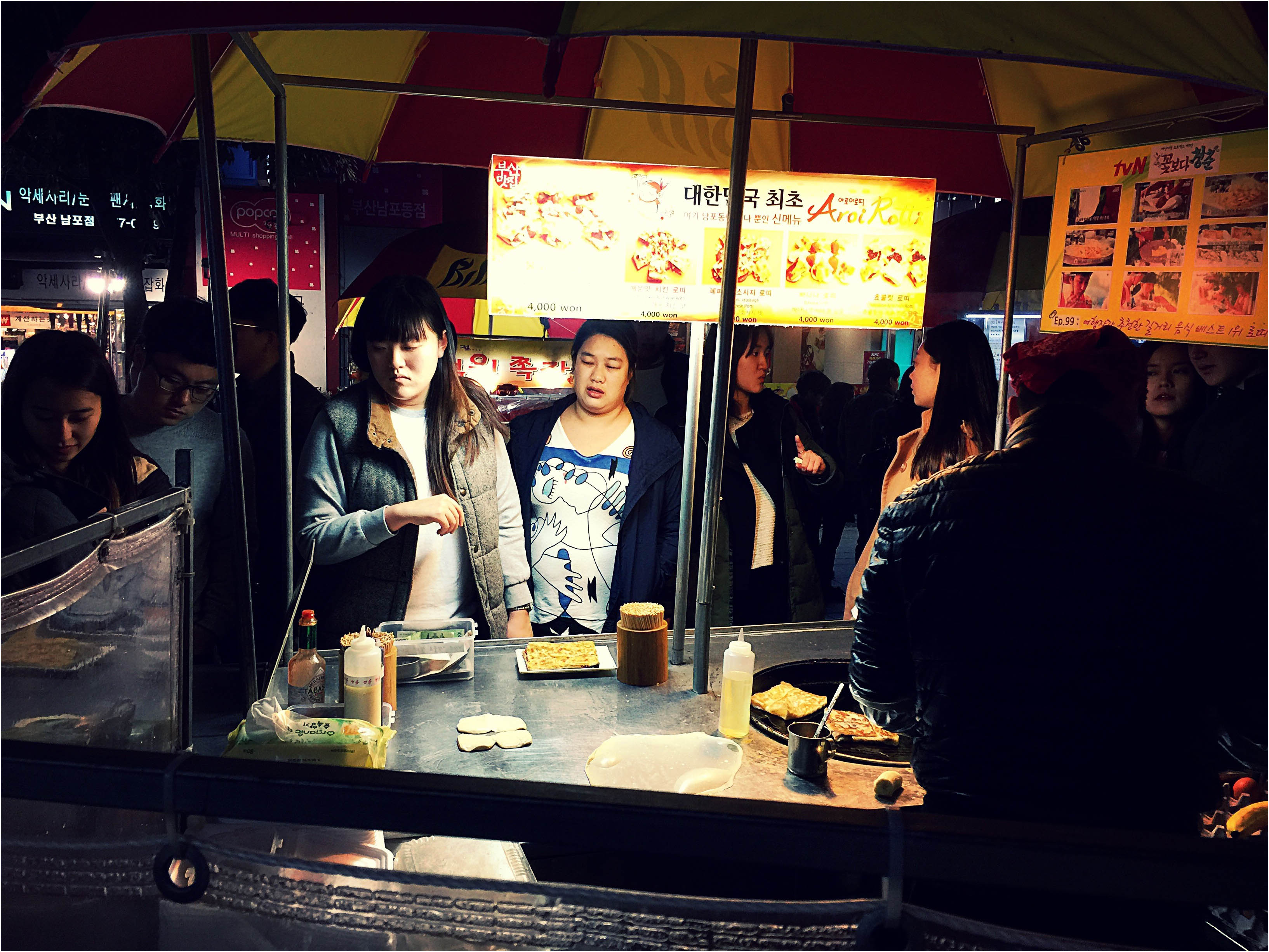 Nét ấn tượng trong bức tranh ẩm thực đường phố Busan là sự biến tấu đa dạng của các loại bánh “hoddeok” làm từ hạt hướng dương, đây là một kiểu bánh rán ngọt ăn lúc còn nóng có vị giòn bùi của hạt và có độ ngọt vừa đủ. Mặc dù có vô số những quán ăn ven đường cùng bán một loại bánh này, nhưng chỉ có quán hoddeok dựng ngay cạnh sân khấu hình tròn ở khu vực giữa của chợ quốc tế mới có những hàng người xếp hàng chờ mua suốt cả ngày.