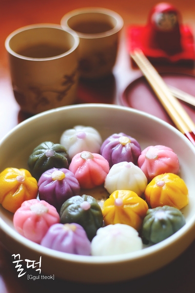 Bánh Tteok có nhiều màu sắc và nhiều loại nhân khác nhau: đậu xanh, táo tàu, đậu đỏ. Loại bánh này thường được đặt trong khay gỗ có phủ khăn trắng rất sang trọng. Ngày Tết, các thành viên trong gia đình Hàn thường là người chuẩn bị món bánh này để vào khay và làm quà biếu, tặng.