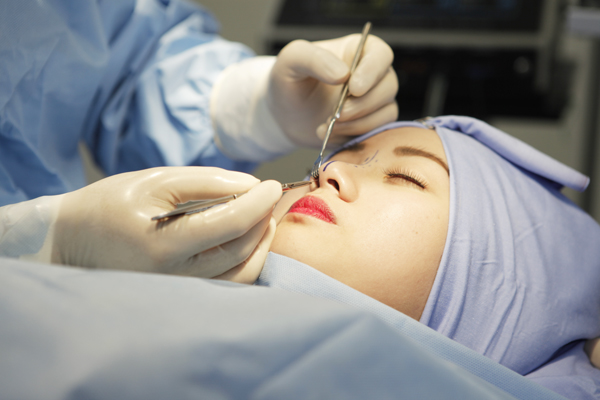 Khách hàng xem lại hình dáng mũi trước khi bác sĩ khép vết mổ.