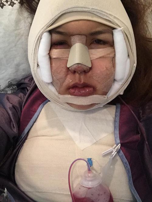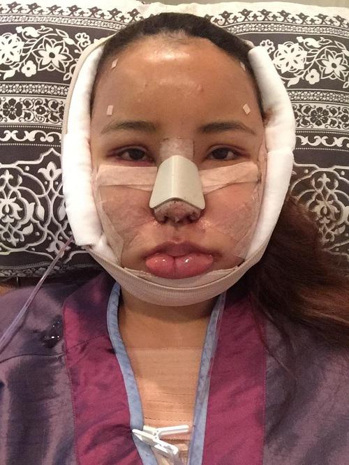 Còn đây là hình ảnh của cô sau khi quá trình phẫu thuật đã hoàn thành