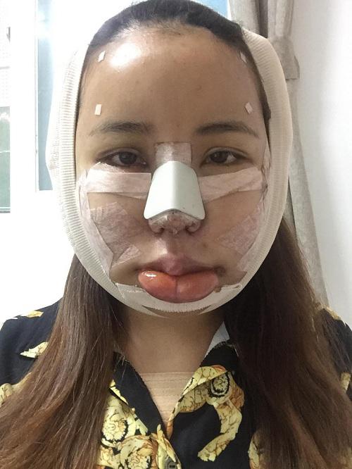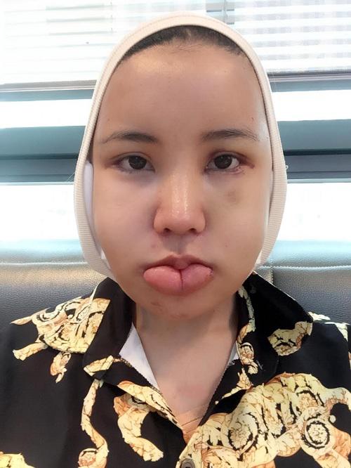 Ngày thứ 3, khuôn mặt bắt đầu sưng do quá trình phục hồi sau phẫu thuật